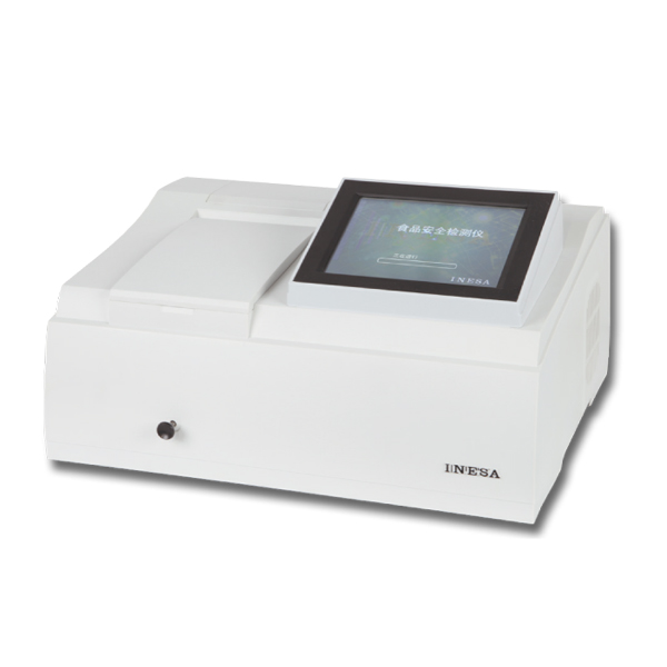 ,酶催化神經(jīng)傳導代謝產(chǎn)物(乙酰膽堿)水解,其水解產(chǎn)物與顯色劑反應,產(chǎn)生黃色物質,用分光光度計測定412nm下吸光度隨時間的變化值,計算出抑制率,通過抑制率可以判斷出樣品中是否含有有機磷或氨基甲酸酯類農(nóng)藥的殘留?梢詫崿F(xiàn)有機磷及氨基甲酸酯類農(nóng)藥殘留量的現(xiàn)場快速檢測。